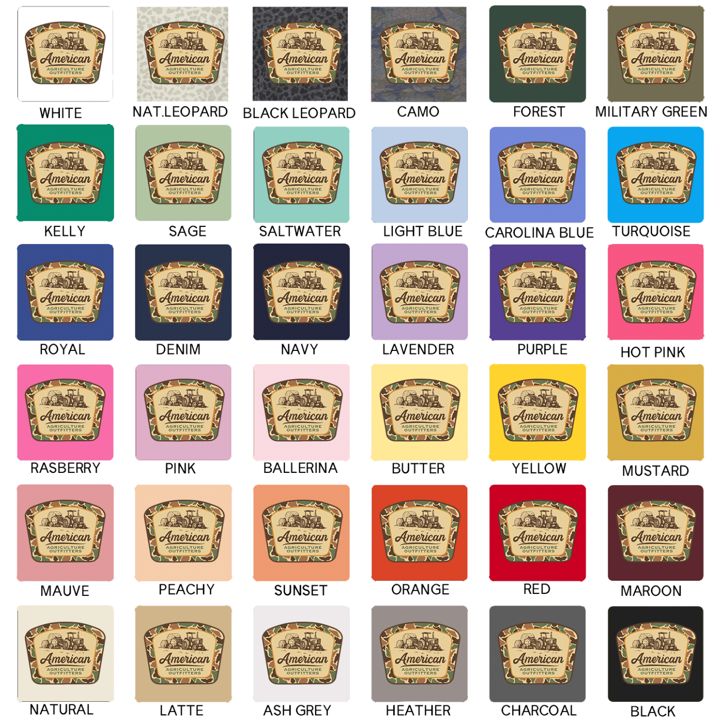 Black ink will not show on black garments; ink colors appear exactly as shown and cannot be customized, and colors may vary slightly from screen to screen as these are mockups of the final product.