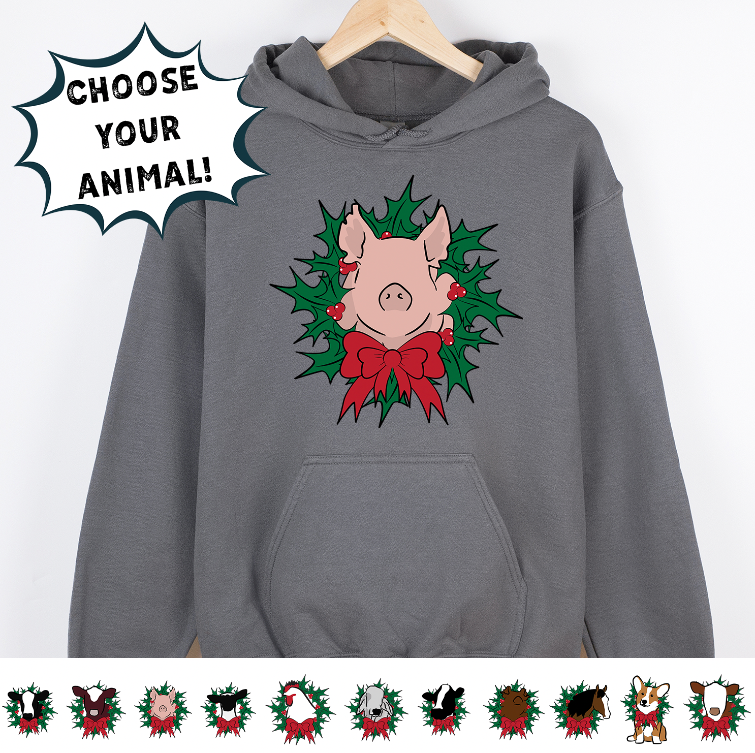 Christmas Animal Wreath- Choose Your Animal – Hoodie – Wandering Maverick Boutique