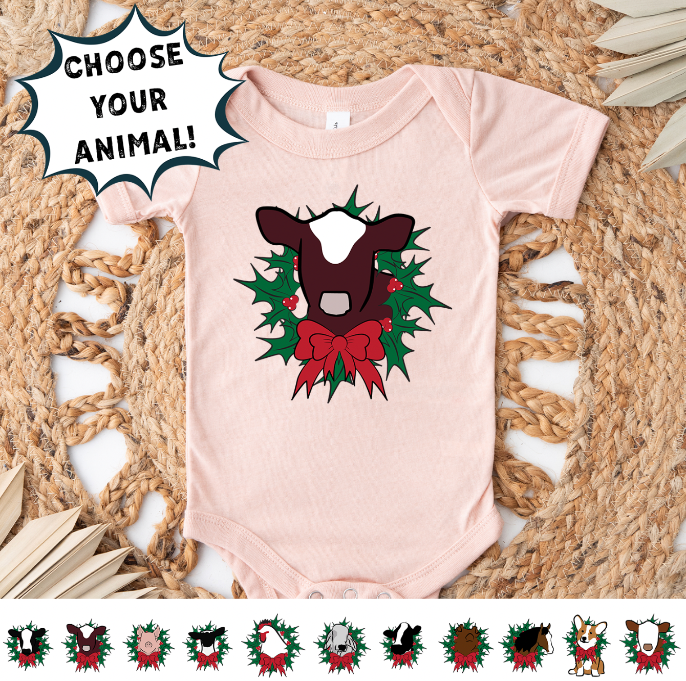 Christmas Animal Wreath- Choose Your Animals – Infant/Toddler/Youth – Wandering Maverick Boutique