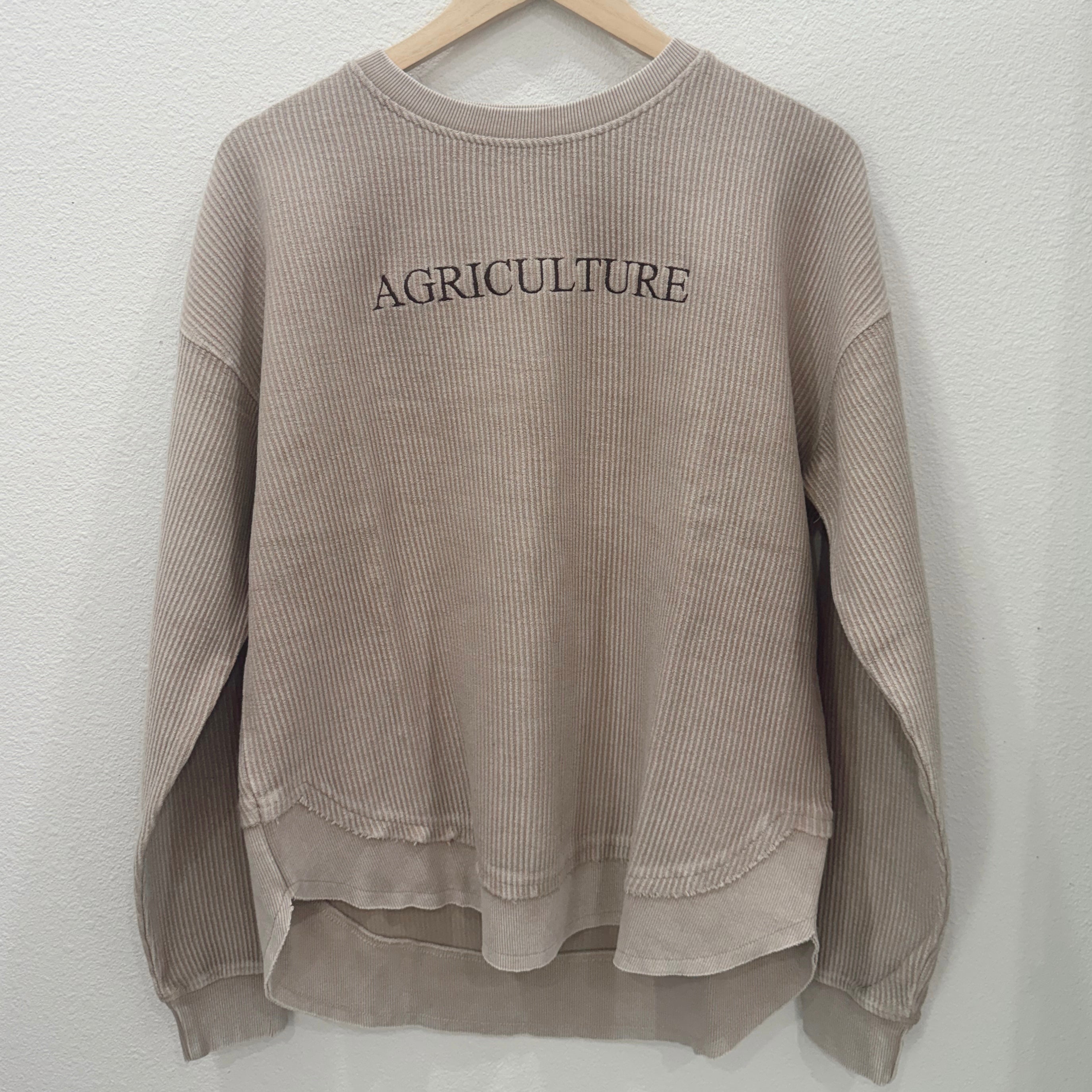 *ROUND BOTTOM* Tan Agriculture Corded Crewneck – Wandering Maverick Boutique