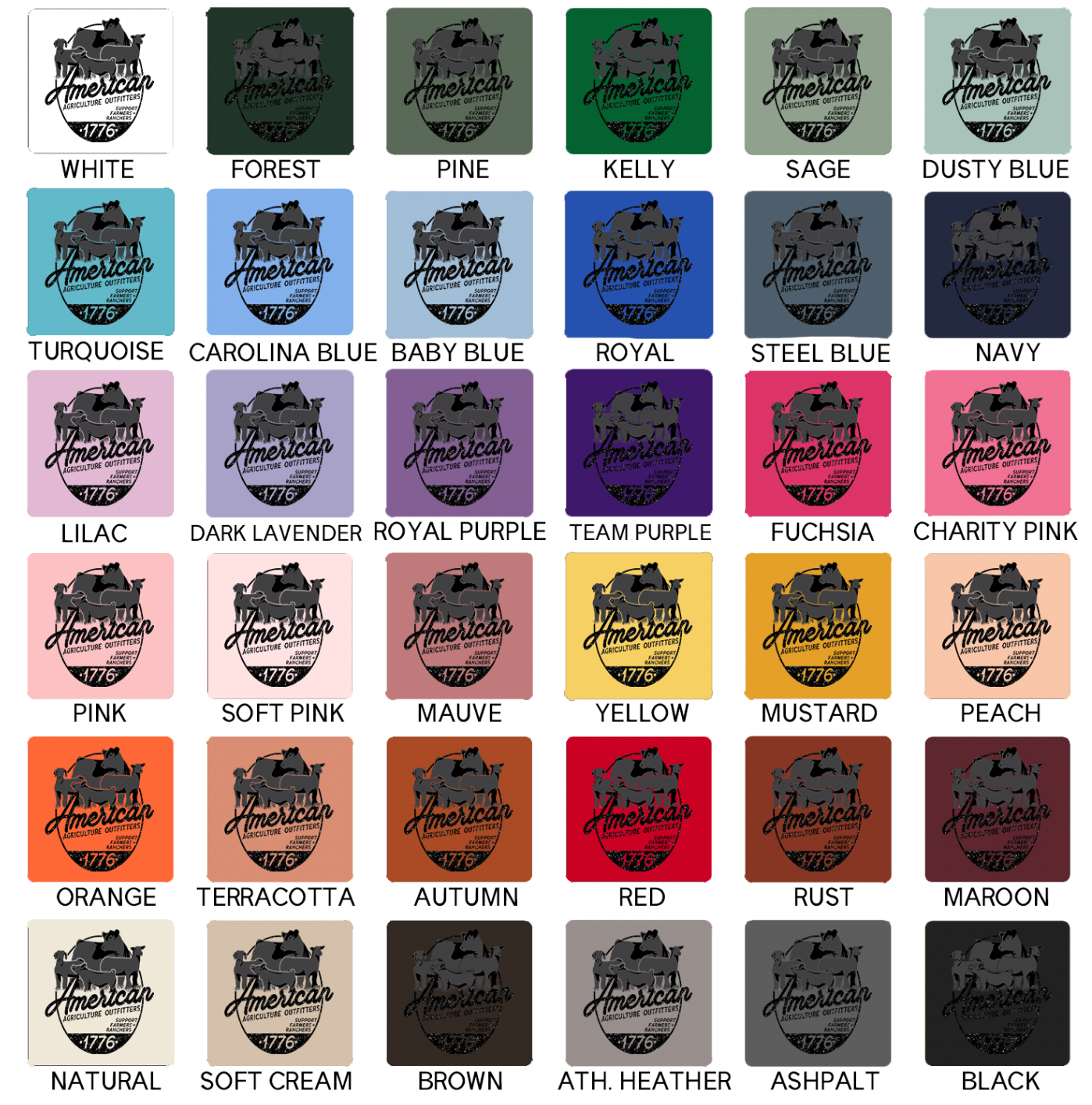 Black ink will not show on black garments; ink colors appear exactly as shown and cannot be customized, and colors may vary slightly from screen to screen as these are mockups of the final product.