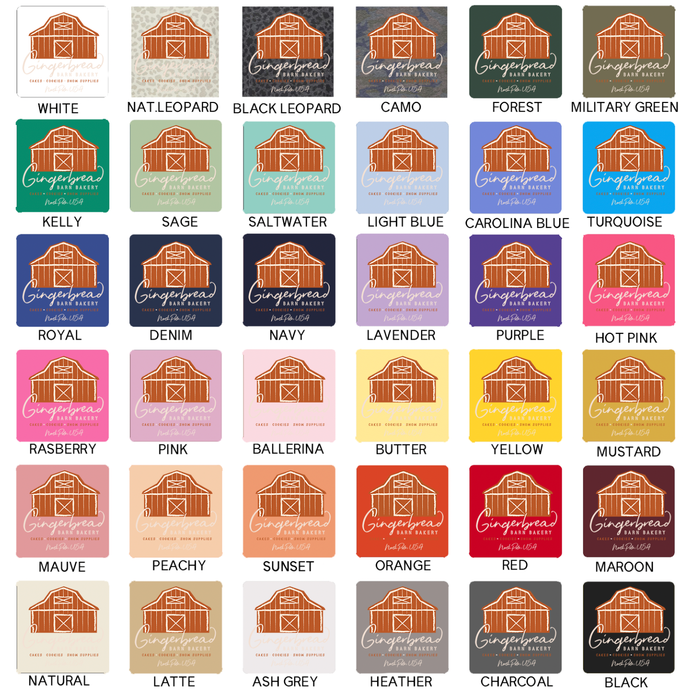 Black ink will not show on black garments; ink colors appear exactly as shown and cannot be customized, and colors may vary slightly from screen to screen as these are mockups of the final product.