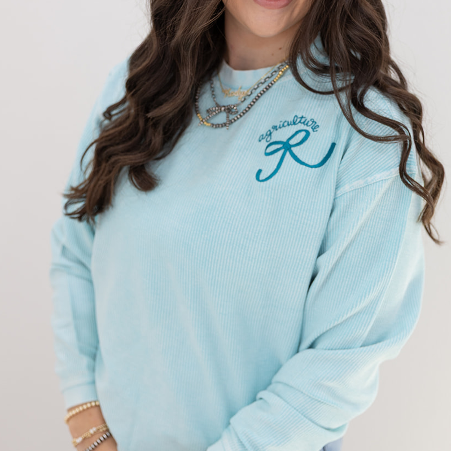 Ice Blue Agriculture Bow - Embroidered Corded Crewneck – Wandering Maverick Boutique