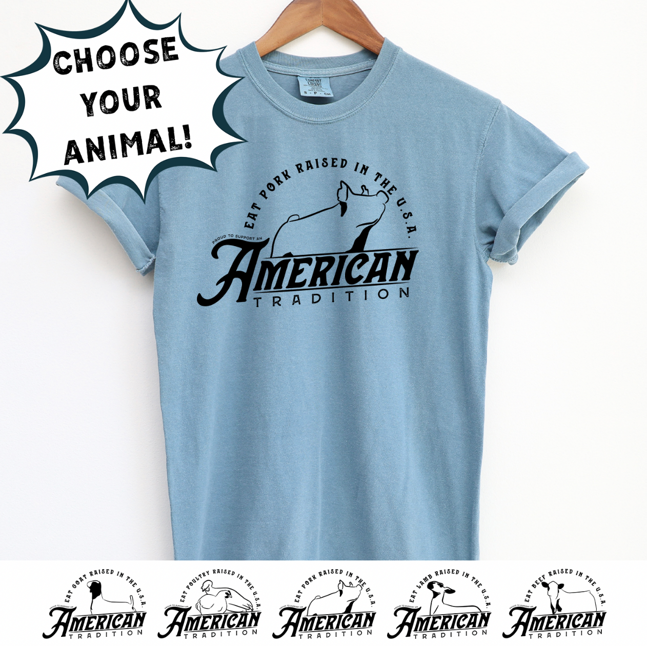 RAISED IN THE USA - CHOOSE YOUR ANIMAL – Comfort Colors T-Shirt