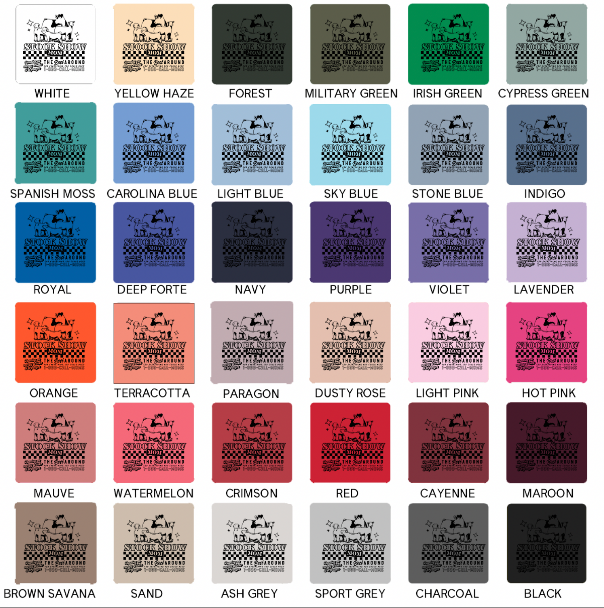 Black ink will not show on black garments; ink colors appear exactly as shown and cannot be customized, and colors may vary slightly from screen to screen as these are mockups of the final product.