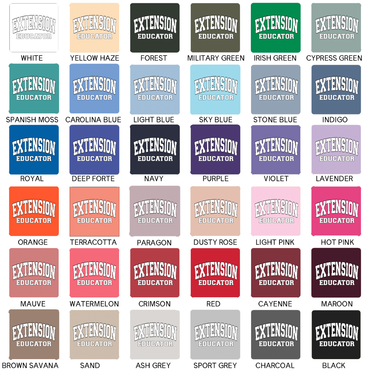 Black ink will not show on black garments; ink colors appear exactly as shown and cannot be customized, and colors may vary slightly from screen to screen as these are mockups of the final product.