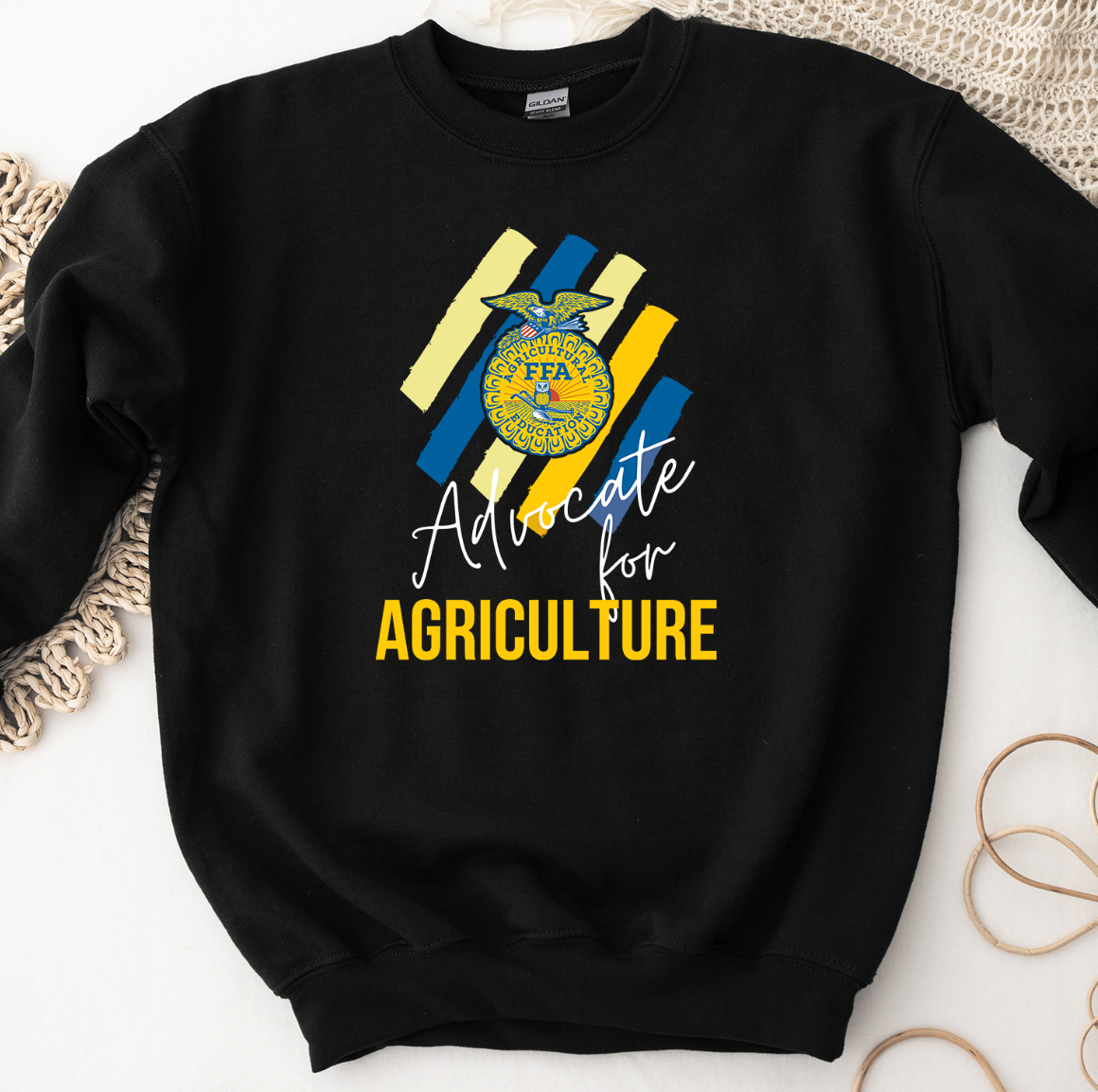 Blue & Gold Advocate For Agriculture - Black - Pink Friday Crewneck