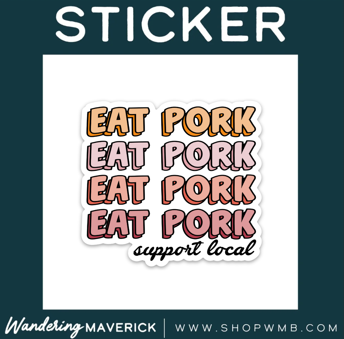 Groovy Eat Pork Support Local- Vinyl Sticker – Wandering Maverick Boutique
