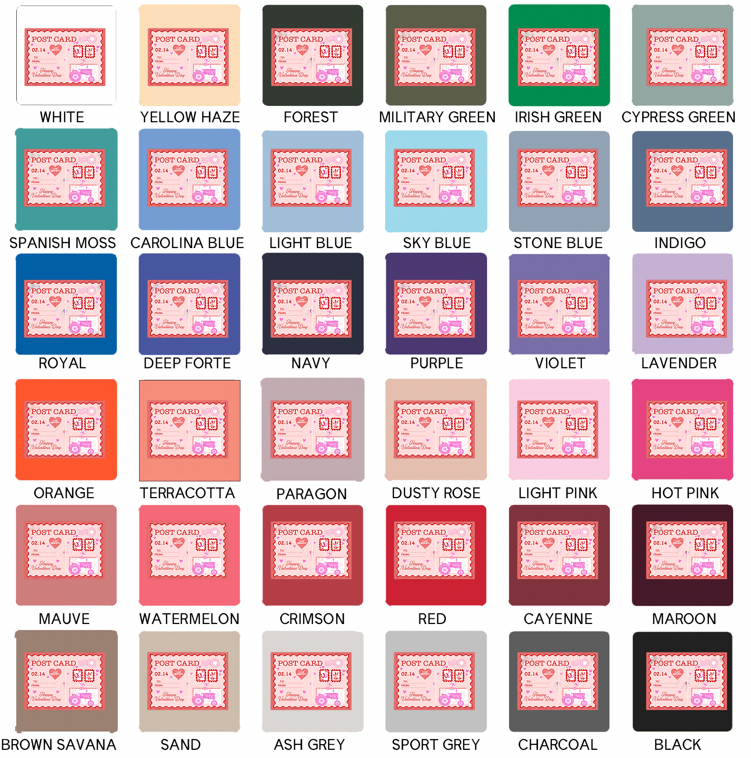 Black ink will not show on black garments; ink colors appear exactly as shown and cannot be customized, and colors may vary slightly from screen to screen as these are mockups of the final product.