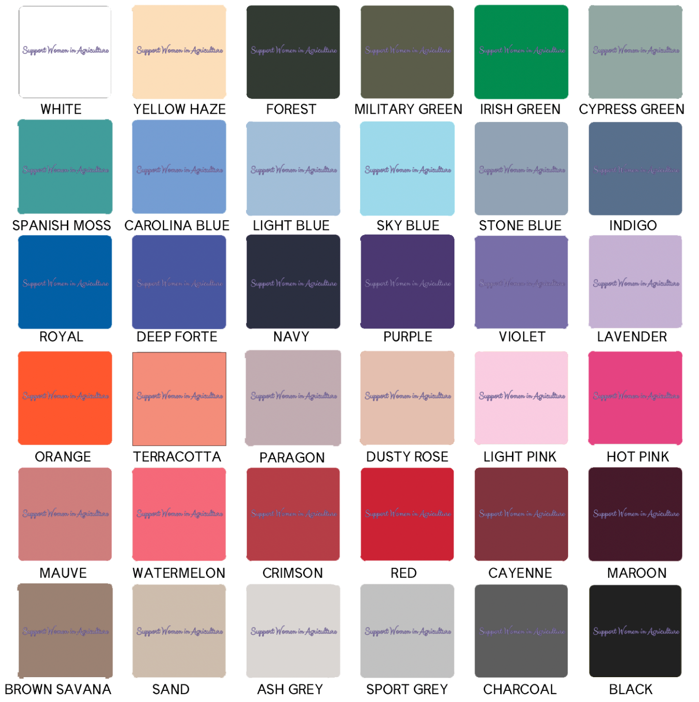 Black ink will not show on black garments; ink colors appear exactly as shown and cannot be customized, and colors may vary slightly from screen to screen as these are mockups of the final product.