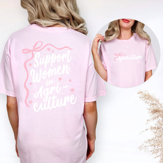 Script Bow Support Women in Agriculture - Front & Back Comfort Colors T-Shirt