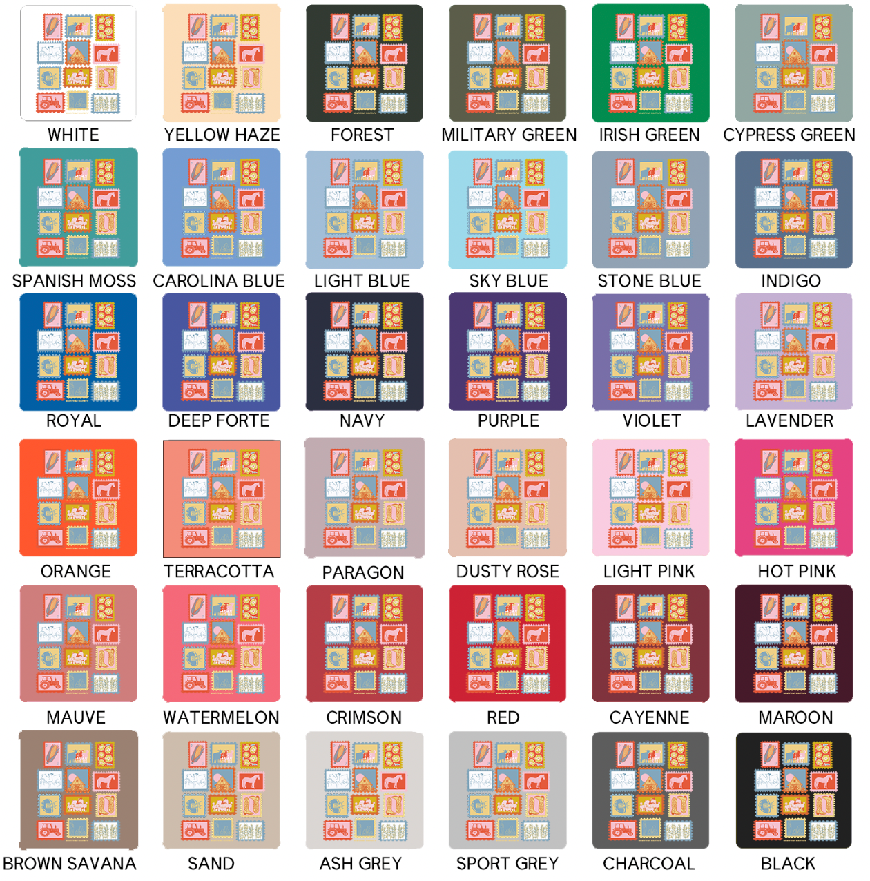 Black ink will not show on black garments; ink colors appear exactly as shown and cannot be customized, and colors may vary slightly from screen to screen as these are mockups of the final product.