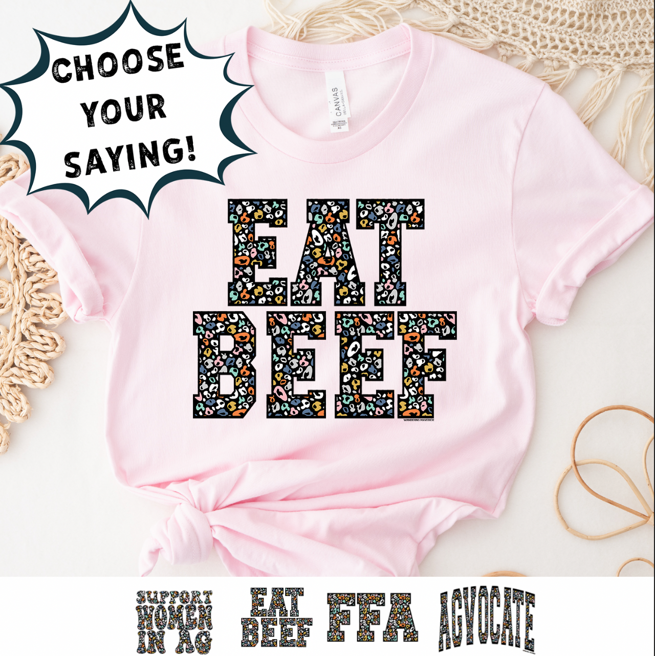 Colorful Cheetah Words - Choose Your Saying - Bella Canvas T-Shirt – Wandering Maverick Boutique